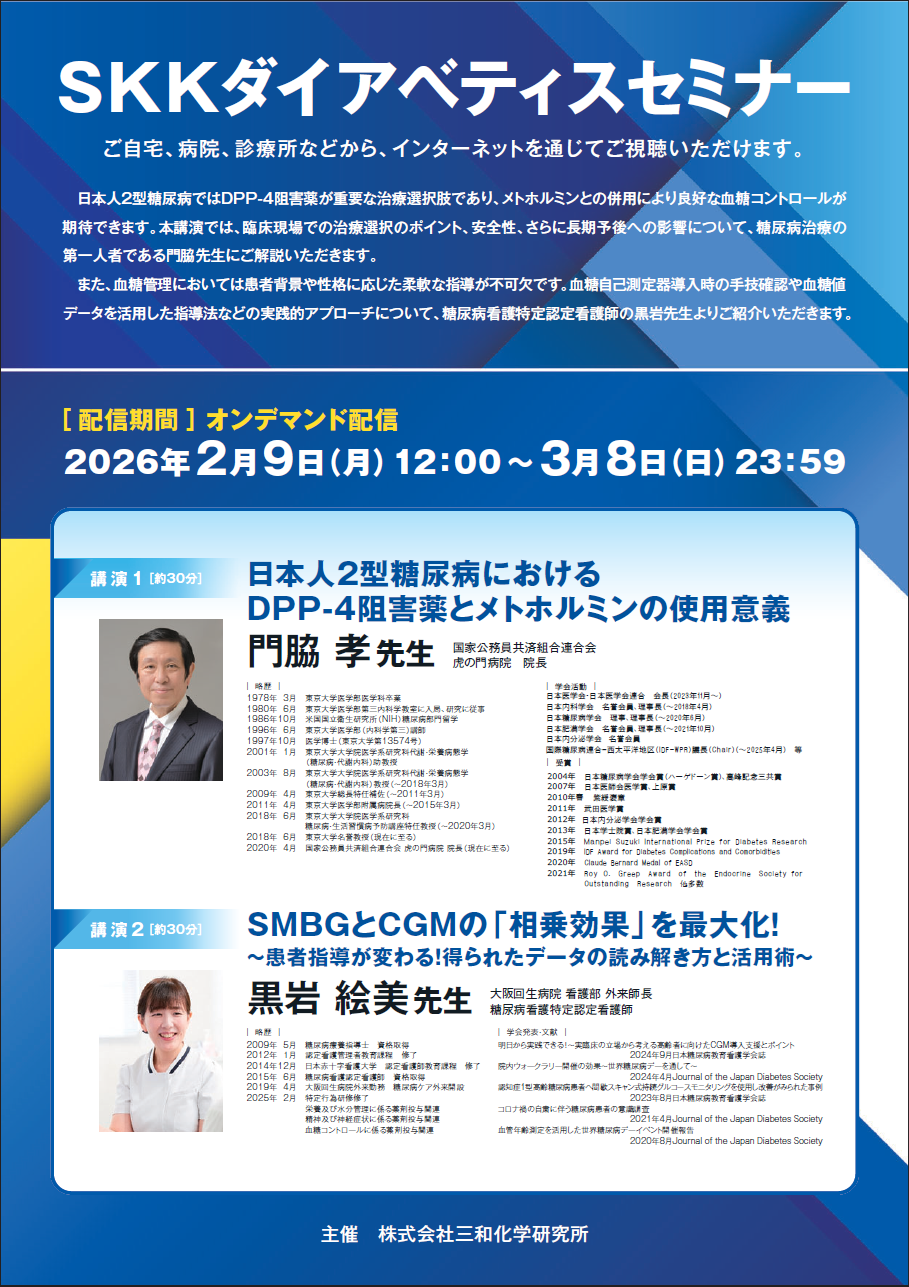 - ご自宅や病院、診療所などから、インターネットを通じてご参加いただける講演会です。