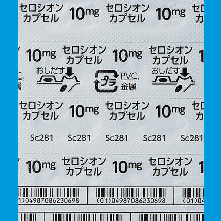 | 性状 | セロシオンカプセル10は、頭部白色、胴部白色の4号硬カプセル剤である。